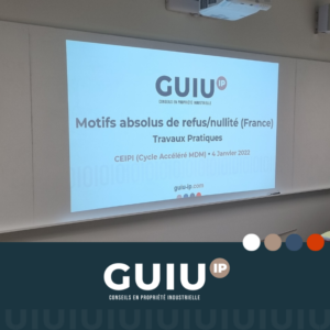 Dorian GUIU, Directeur Général de GUIU IP, est intervenu le 4 janvier dernier au CEIPI à Strasbourg pour animer une séance de travaux pratiques en droit des marques, à l’attention du Cycle Accéléré Marques, Dessins & Modèles. Le séminaire, qui a eu lieu en format hybride, était dédié aux motifs absolus de refus et de nullité (pratique et jurisprudence françaises).